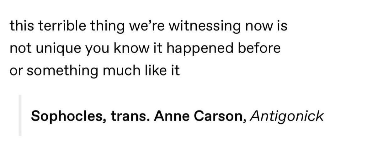-Anne Carson, from the translator’s note to Antigone